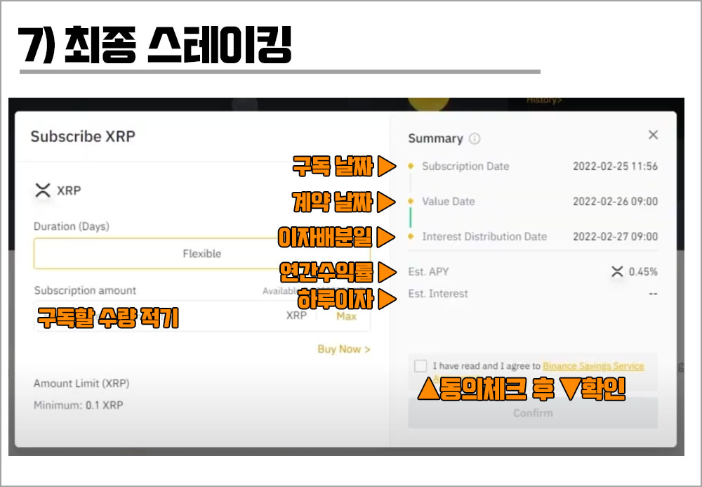 15일, 1달, 2달, 3달, 4달 만기 시 이자는 1년 기준으로 15일치, 1달치, 2달치로 지급되고 연속 스테이킹으로 설정하거나 1년을 채우면 해당 이자율이 지급된다.