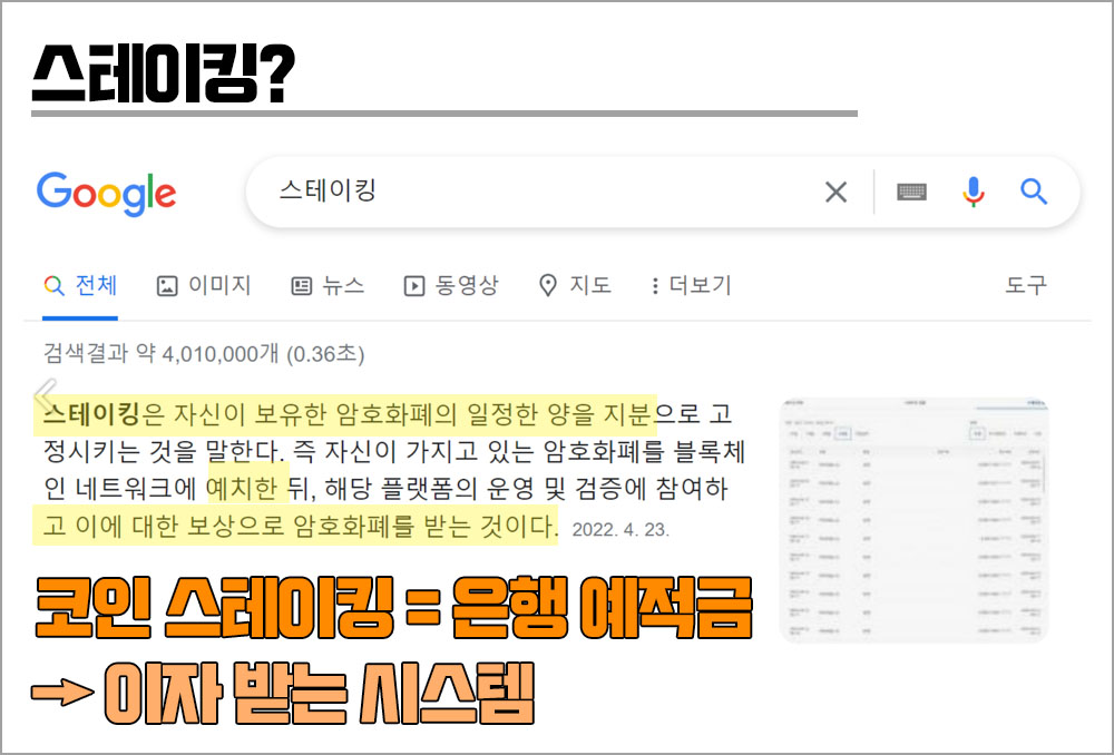 자, 그렇다면 먼저 스테이킹이 무엇인지 간단히 살펴보면...!