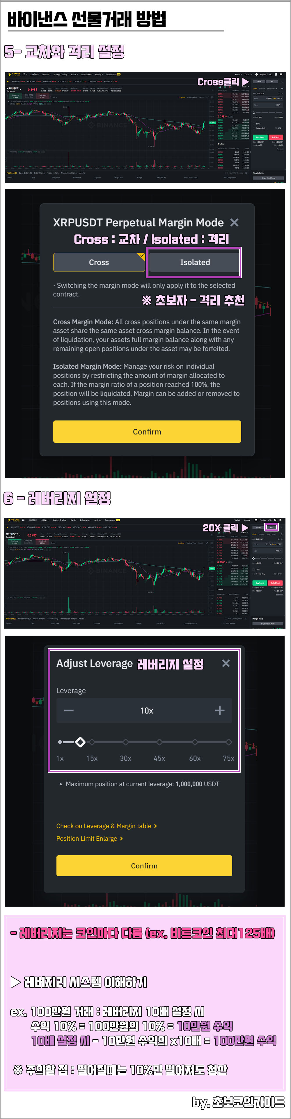 tip 처음에는 레버리지를 낮게 설정하여 청산 가능성을 줄이기를 추천한다.