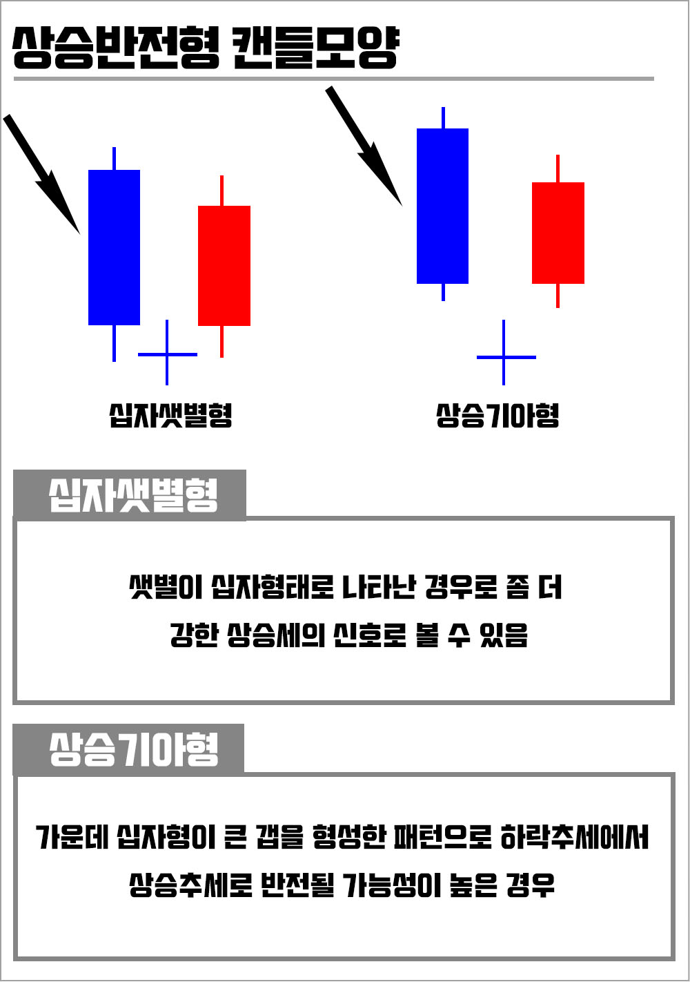 십자샛별형은 샛별이 십자형태로 나타난 경우로 좀 더 강한 상승세의 신호로 볼 수 있다.