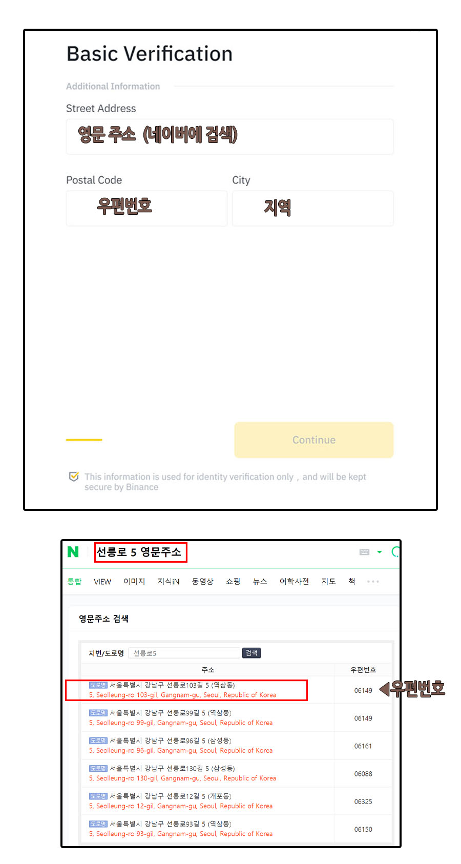 City에는 Gyeonggi-do 등 자신이 사는 지역을 넣는다.
