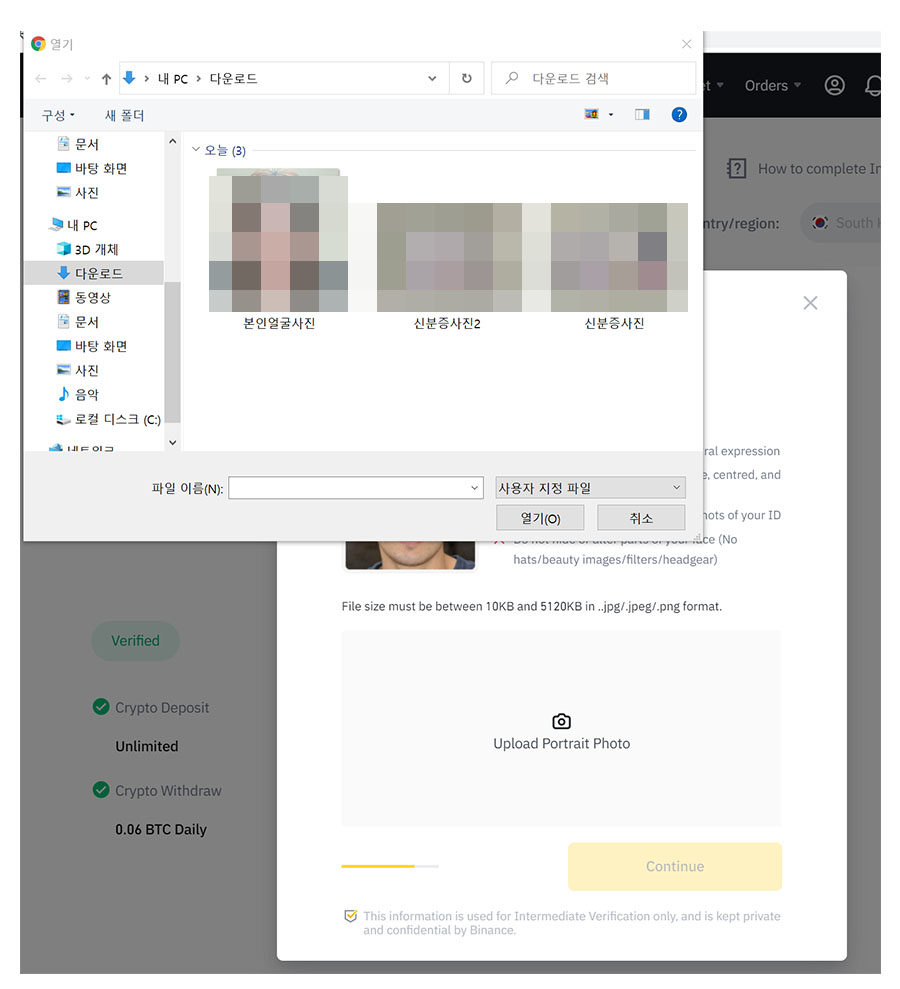 나의 경우 컴퓨터에 미리 본인 얼굴 사진, 신분증 사진을 저장해 놓았다.