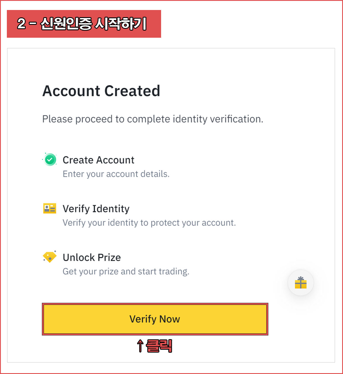 가입이 완료되었다면 [Verify Now]를 클릭하여 신원인증을 시작한다.