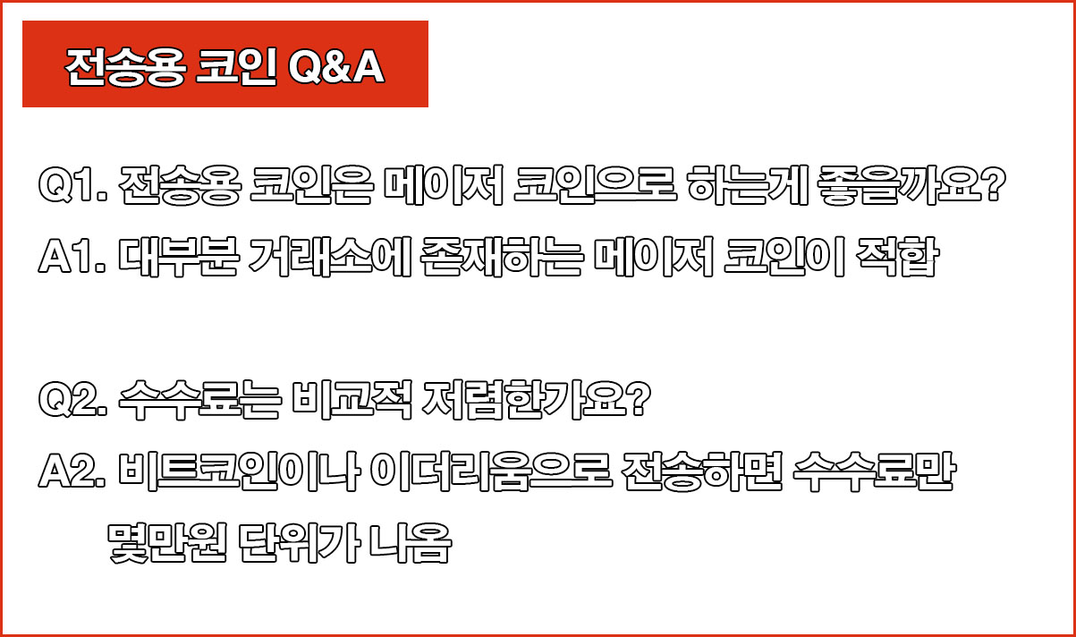 Q1. 전송용 코인은 메이저 코인으로 하는게 좋을까요?