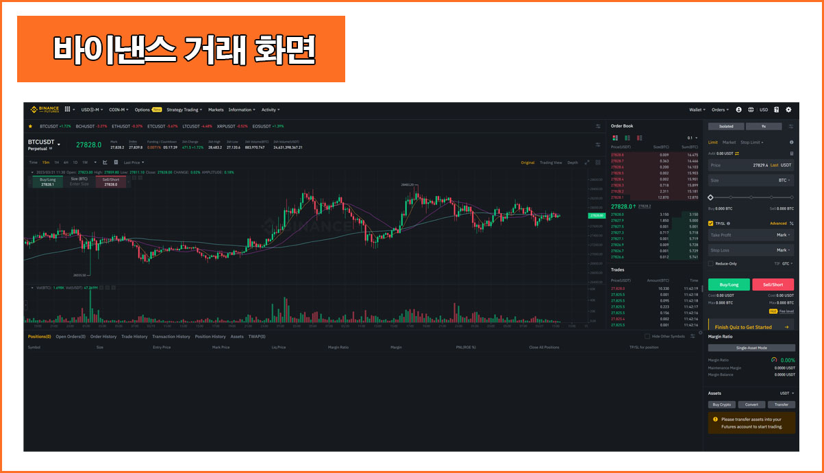 PC에서 본 바이낸스는 직관적인 인터페이스로 거래자들이 이용할 때 편리하고 대부분의 거래소 화면이 비슷하기 때문에 큰 어려움은 없을 것이다.