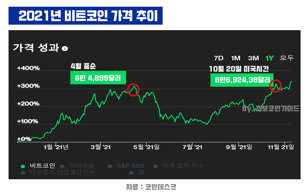 11월 9일 기준 비트코인 가격이 8200만원을 돌파하면서 국내에서 사상최고가를 경신했다. 글로벌 시장에서도 비트코인 가격은 6만 8000달러에 근접하는 등 최고가를 세우면서 "연내 10만달러까지 상승 가능" 썰에 불을 지피고 있다.