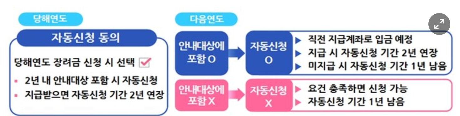 이번 9월 반기 신청부터는 65세 이상의 고령자와 중증장애인을 대상으로 하는 자동신청 제도가 최초로 적용된다. 자동신청제도는 사회적 취약계층이 매년 장려금을 신청해야 하는 불편을 해소하고 신청 누락을 방지할 수 있기 떄문에 받아야할 장려금을 놓치지 않고 찾아주는 제도로 국세 행정에 큰 신뢰를 얻었으며 적극 행정 우수사례로 뽑힌 제도이기도 하다.