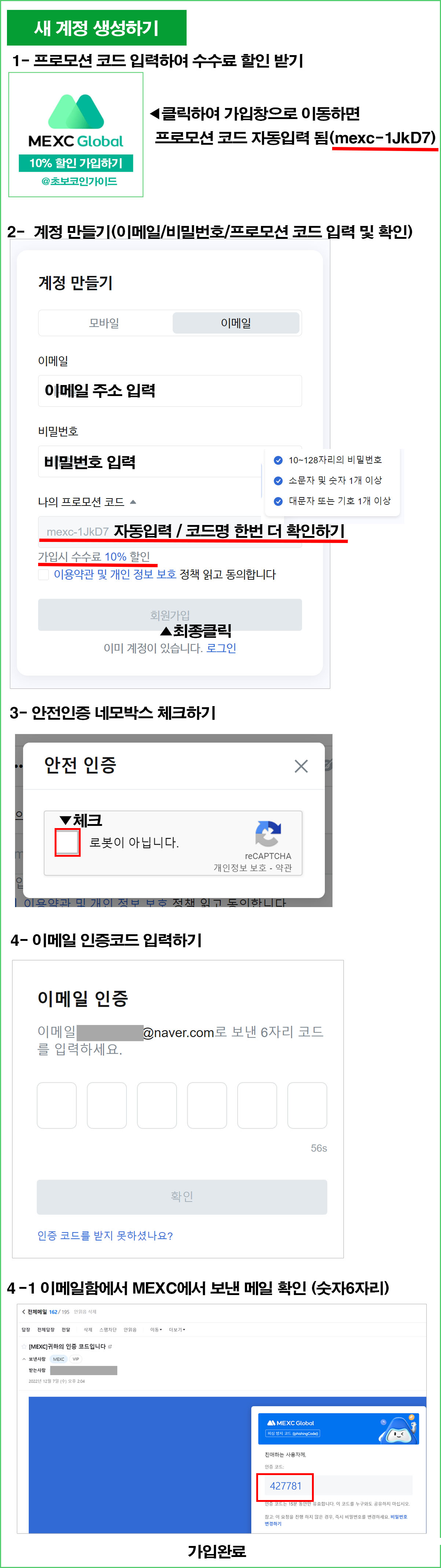 위의 링크를 통해 본인 명의의 이메일 또는 휴대폰 번호로 신규 계정을 생성한다. 초보코인가이드는 MEXC 공식 파트너로 믿고 가입해도 됩니다.