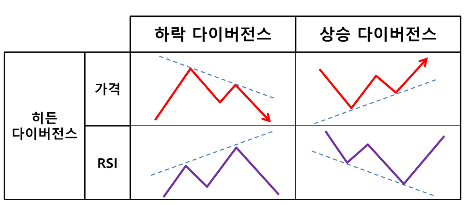 히든 다이버전스는 추세의 지속을 뜻한다.