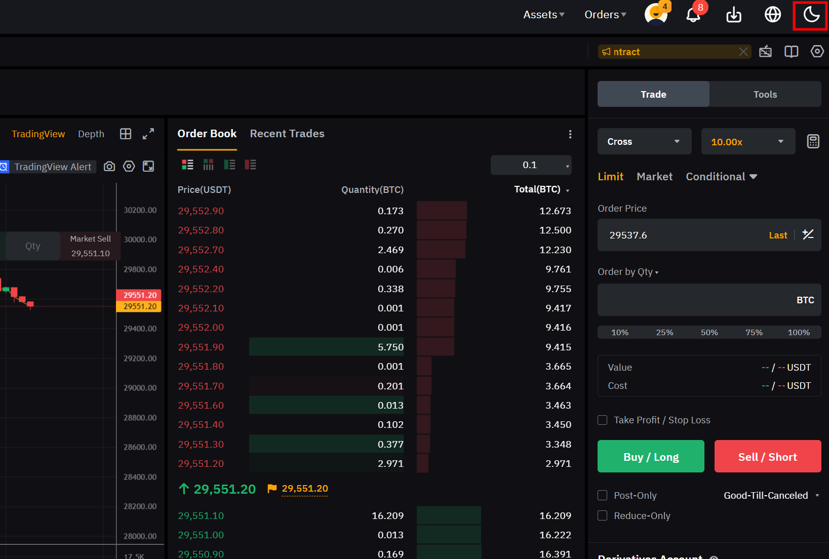화면 우측 상단의 해/달 아이콘을 클릭하면 화면을 어둡게, 밝게를 설정할 수 있다.