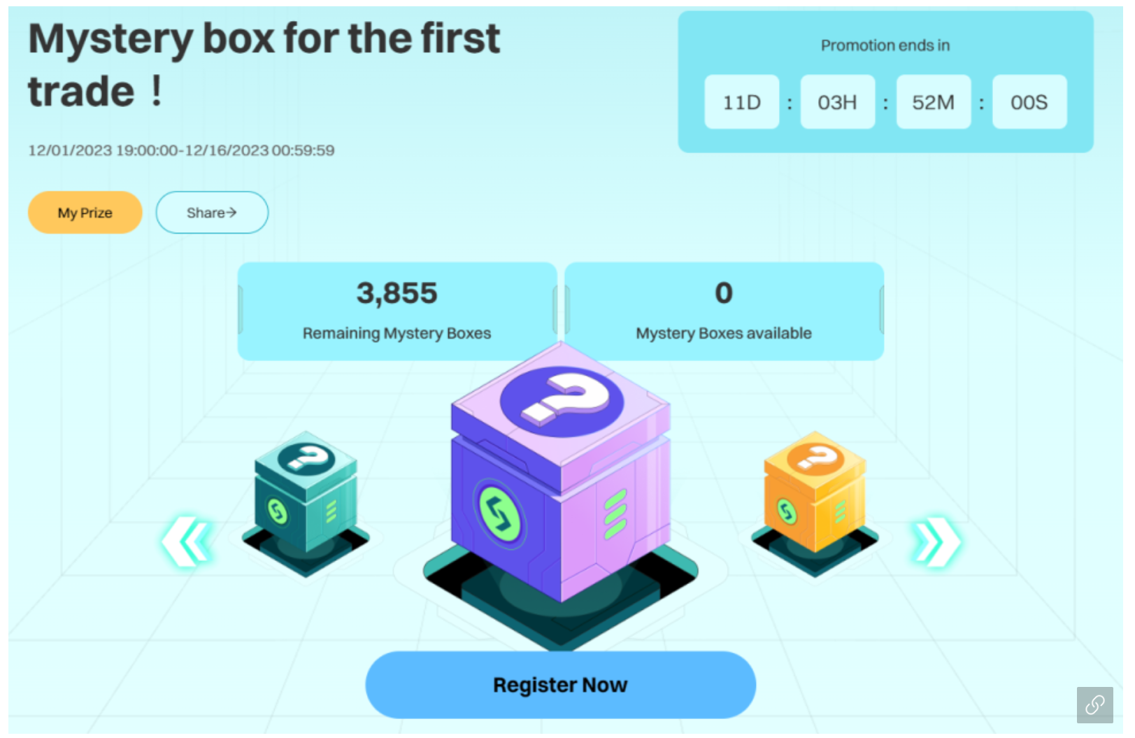 비트겟 미스터리 박스 이벤트는 신규 가입 대상자만 참여 가능한 이벤트이다. 여러 거래소에서 연말 이벤트가 비슷하게 진행 중인 것 같다.