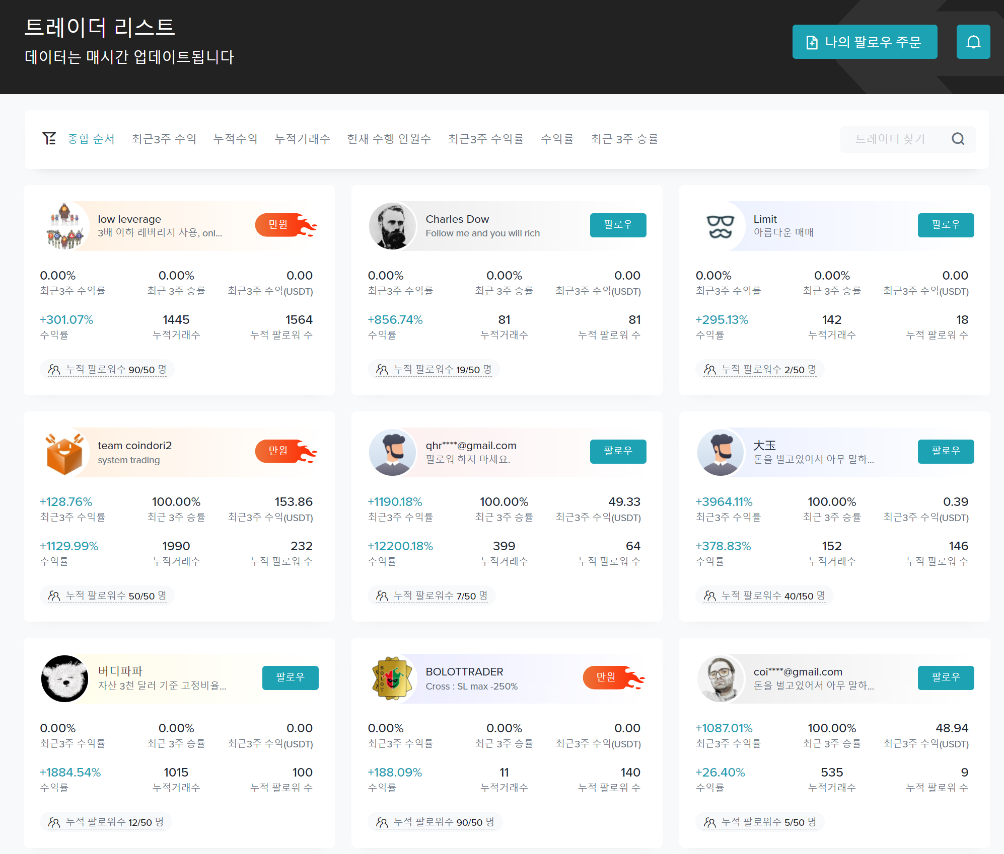 카피트레이딩 시스템은 난이도가 높은 선물거래를 사용자가 선택한 트레이더에게 맡길 수 있는 시스템이기 때문에 차를 수시로 볼 수 없는 사용자나 선물투자에 익숙하지 않은 사용자도 높은 수익을 창출할 수 있는 레버리지 선물거래를 경험할 수 있다.